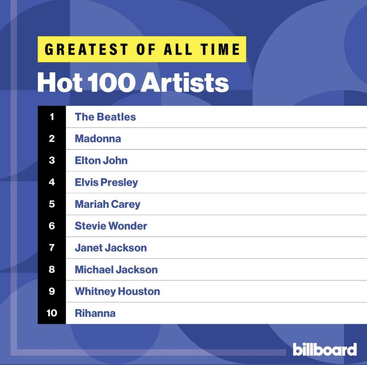 Rap Alert Backup On Twitter Billboard Reveals The Top 10 Greatest Hot 100 Artists Of All Time Rihanna Is The Only Artist To Debut In The 2000 S To Make The List Https T Co Cvtgchoqv7